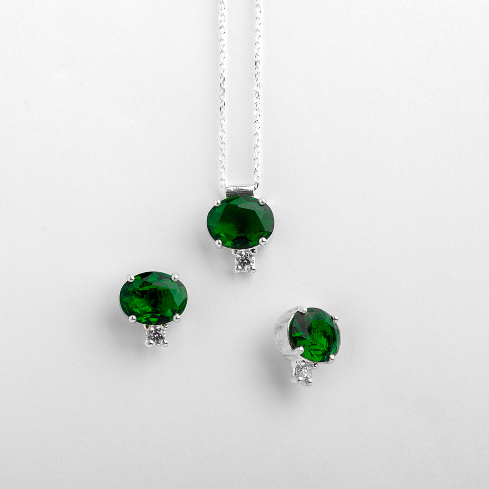 نیم ست گردنبند و گوشواره نقره و سنگ اتمی سبز